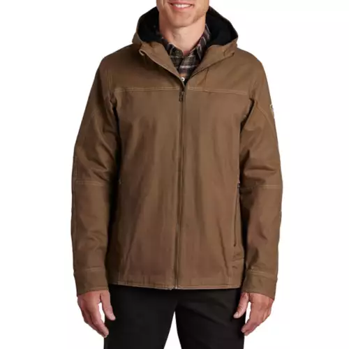 The Men’s KUHL The Law Hoodie Jacket is the ultimate layering piece for colder weather. This lightweight jacket for men is constructed with KUHL’s articulated sleeves and durable stretch canvas for maximum range of motion. The generous fit makes for easy layering so you can stay warm all season long. Plus, zippered pockets and an attached hood add extra coverage and warmth. Look great and keep the cold at bay with the Men’s KUHL The Law Hoodie Jacket.