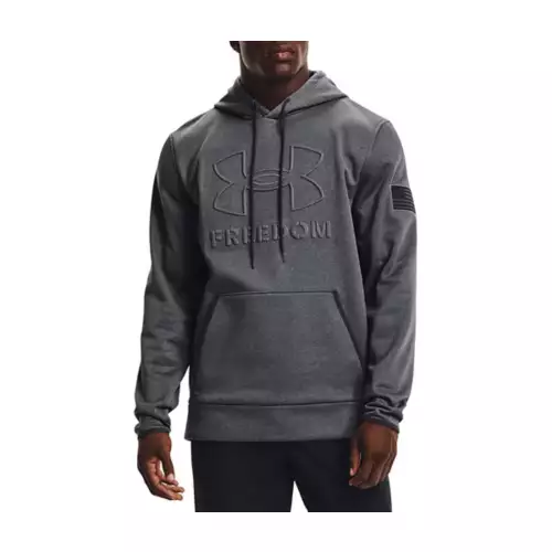 The Men’s Under Armour Freedom Emboss Graphic Hoodie is a warm layer for cooler days. Made from Armour Fleece®, the Under Armour Freedom Hoodie is lightweight yet warm and features UA Storm technology to repel water without sacrificing breathability. This Under Armour Freedom Hoodie offers a slight amount of stretch for a better range of motion too. With features like a kangaroo pocket and hood with drawcord closure, the Men’s Under Armour Freedom Emboss Hoodie will be your go-to layer for chilly days.