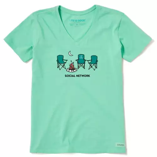 Women’s Life is Good Social Network Camp Crusher Lite V-Neck T-Shirt