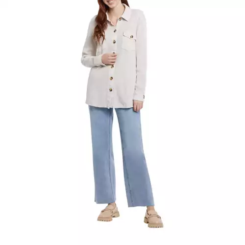We can’t get enough of the shacket trend and it’s here to stay! This piece is our current obsession, thanks to its 29″ length, classic button-front closure, contrasting cuffs, collar, and chest flap pockets, all wrapped up in our super soft waffle knit fabric that keeps you feeling comfy and looking stylish all day long.